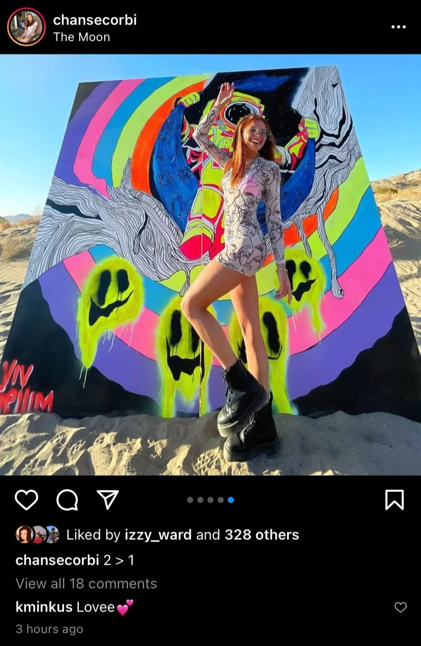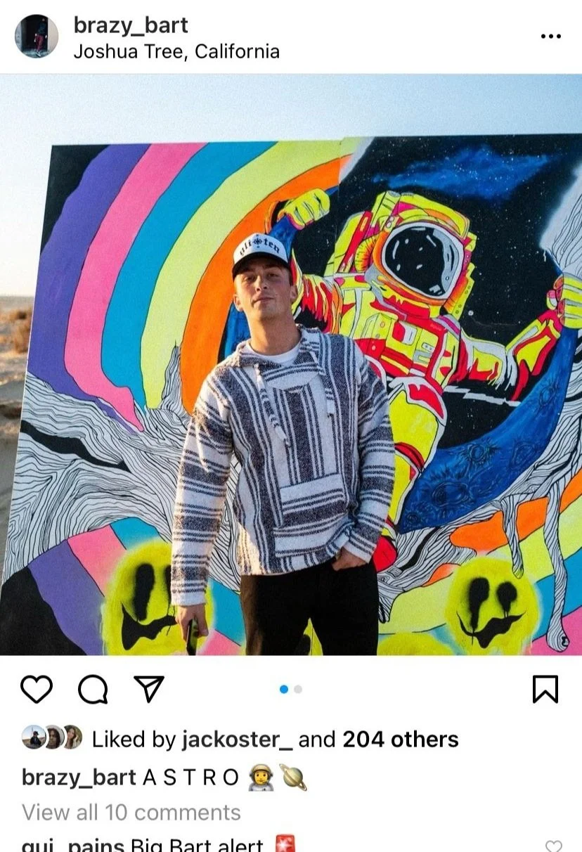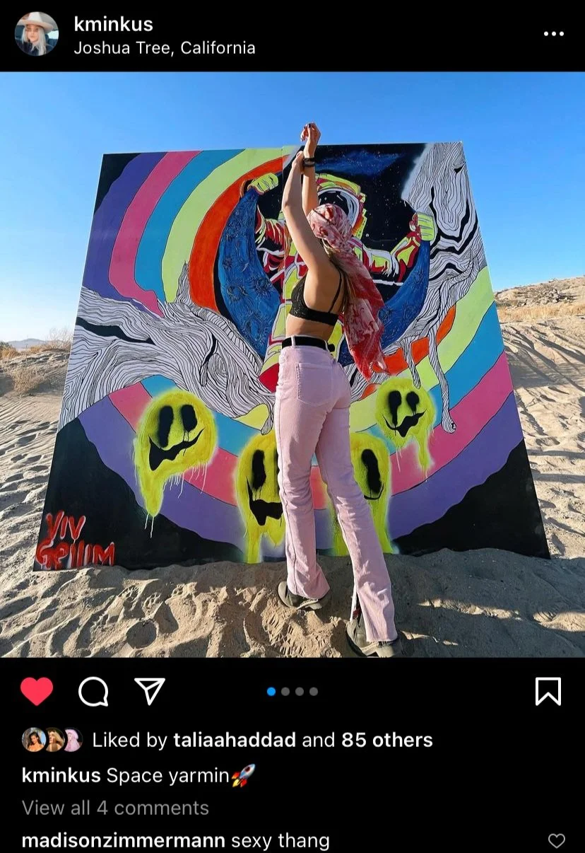acrylic paint, spray paint, and pen